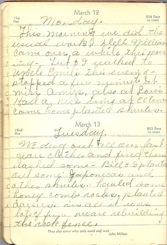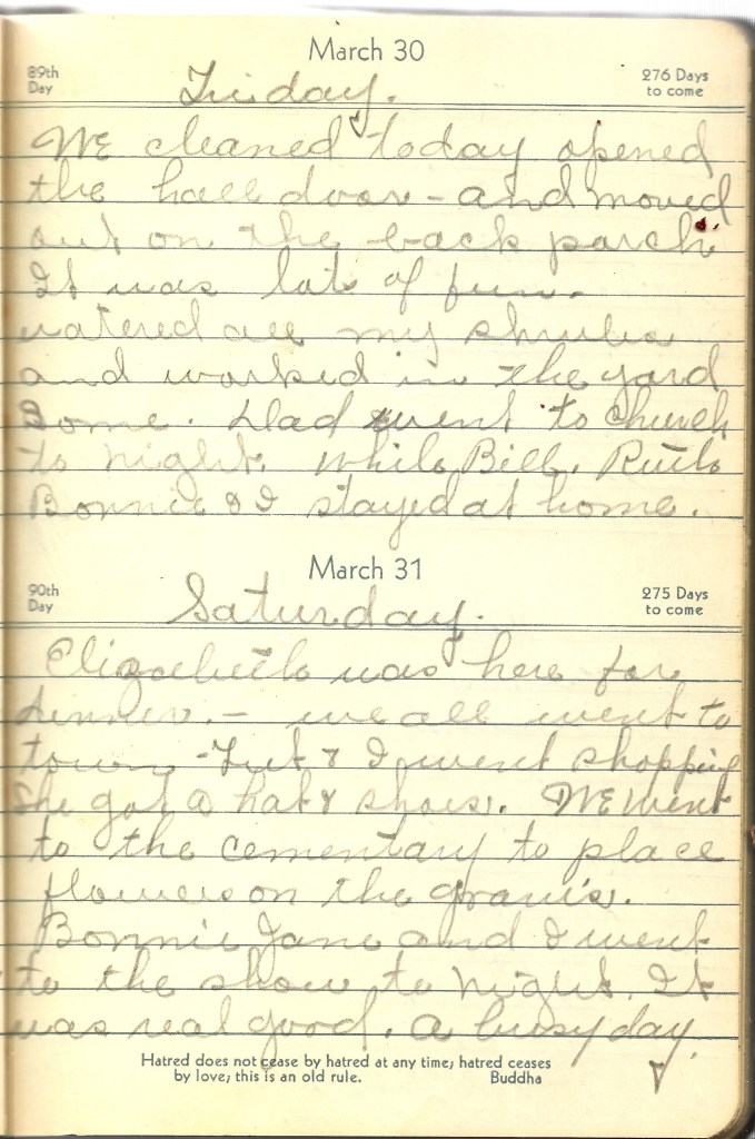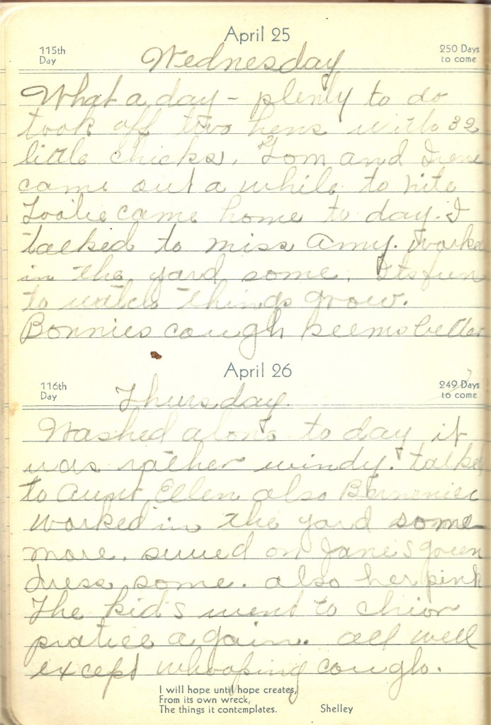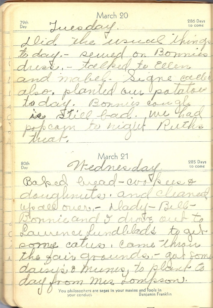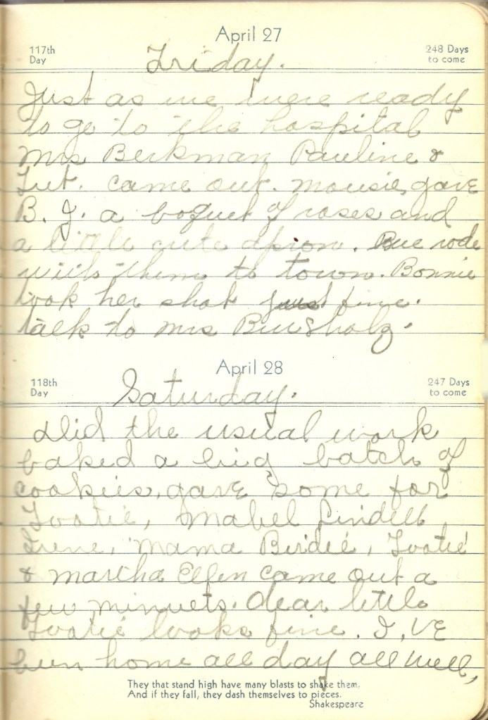 “I was told a sweet little secret today.” — Pretty sure the secret is that Mabel is expecting. Franklin is born in December 1934, and I couldn’t find another kiddo in the clan that was born this year.